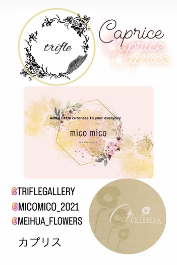 ![]() ![]() みんなが集う場所、時間が集まる、アートやハンドメイドが集う。特別な日にも、気まぐれにふとした時にも、アシビに立ち寄り手にとってもらいたい。 そんな想いからつけたユニット名:Caprice。 3名の名前が入った唯一の共通『i(アイ)』は、「私」とも「愛」ともとれます。 ジャンルが違う3作家が繰り広げる作品アレンジ。 異なるようで実は組み合わせると一体となるをCapriceをぜひお楽しみください。 Meihua 日常に飾りやすくギフトにもぴったりなフラワーアレンジの花雑貨。 髪飾り trifle 温かみのある糸を使ったアクセサリー[itomaki]糸を巻くところから手作業でスタートします。 耳飾り micomico キラキラしたスパンコールや色とりどりのインド刺繍リボンを「日常の生活にときめきを添える」アイテムに変身させます。 首飾り ❁Caoriceのコラボセット販売内容❁ 半襟、髪飾り、耳飾り・帯留めなどのコラボセット コラボセット販売内容 コラボセット販売内容 ❁Caoriceのユニット活動❁ ●2024年7月6日7日「Caprice~plaisir maeiche~」 三宮センター街にてCaprice主催のイベント。他の作家様交えて。 ワークショップ&対面販売開催。 ![]() Capriceが主催のマルシェを開催致します。 そして今回はそのマルシェに、色々な作家様をお呼びして集います。 ~plaisir maeiche~(プレジールマルシェ) 7月6日(土)7日(日)11:00〜18:00 場所: 三宮センター街にて(詳しい場所は後日) ご協力頂く作家様 当日はハンドメイド作品やワークショップを開催します。 ※但し、イベント開催を中止させて頂く場合がございます。その際は随時おしらせいたします。 ●2024年3月30日31日「Caprice」 Foule de PLENTY。 対面販売開催。 ![]() ●2024年3月18日19日「Caprice」 ワークショップ&対面販売開催。 ![]() ●2024年1月18日19日「Caprice」 in 塩屋RUKUKURU。 対面アトリエ販売・ワークショップ開催。 ![]() 当日の様子ブログ記事掲載1日目 当日の様子ブログ記事掲載2日目 ●2023年12月19日「Caprice」 Foule de PLENTY。 カプリス始動。対面販売開催。 ![]() 当日の様子ブログ記事掲載 |