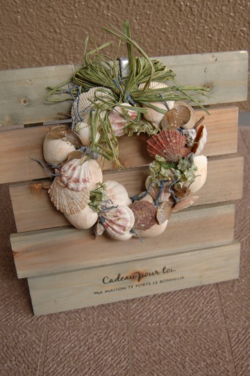 天然素材の貝殻で出来たリース。まるで波の音が聞こえてきそう。