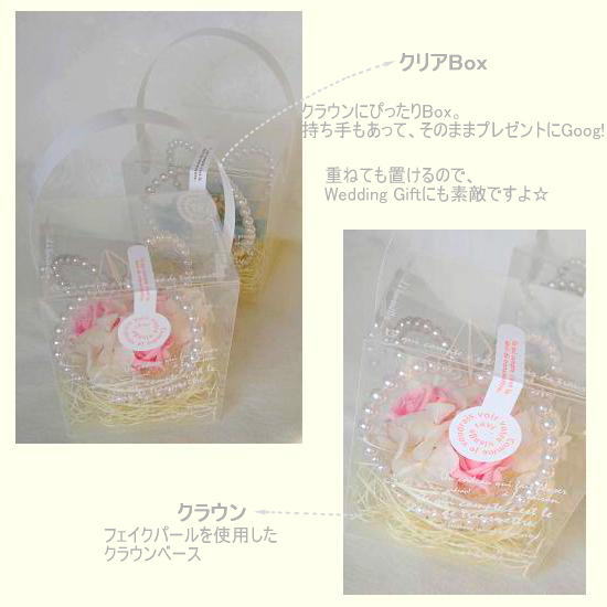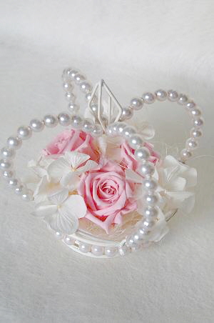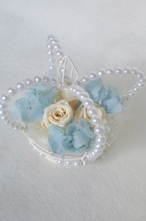フェイクパールで作られた王冠に、清楚なミニローズとアジサイでアレンジ。新色も加わりました。可愛らしいピンク&ホワイト・清楚なサムシングブルー&ホワイト。あなたならどっちがお好みですか?
