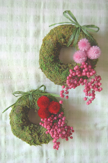 プリザーブドフラワー(千日紅)、ドライ(モス、ペッパーベリー) |
